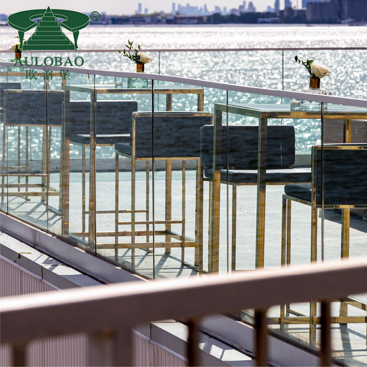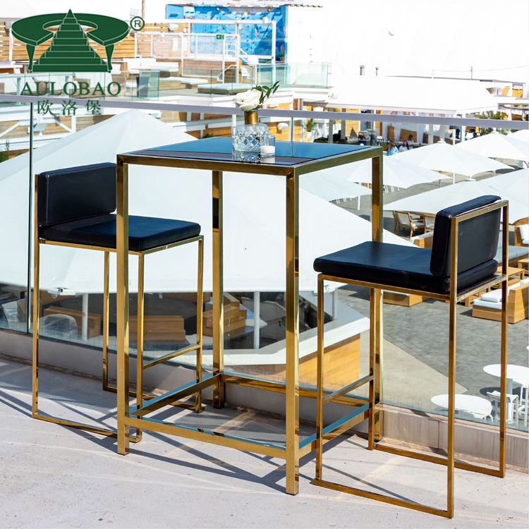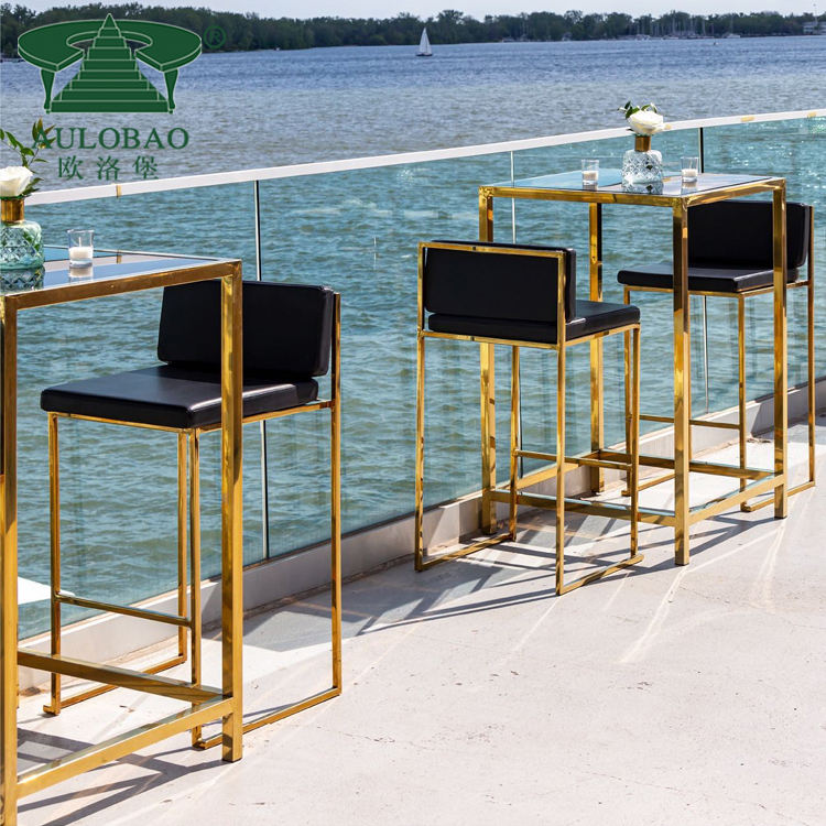 Square Cocktail Used Gold Stainless Steel Glass Top Gold bar Table