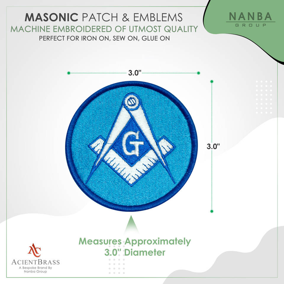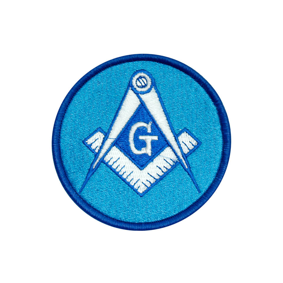 Square & Compass Round Embroidered Masonic Patch - Blue & White 3'' Diameter