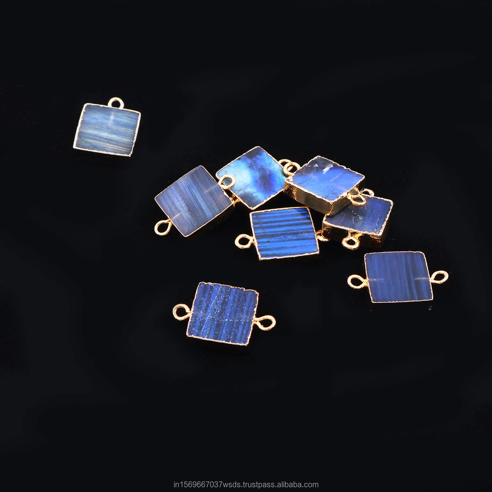 Square Cut Labradorite Charms Gold Trimmed Handmade Healing Crystal Pendants for Necklace and Bracelet Craft
