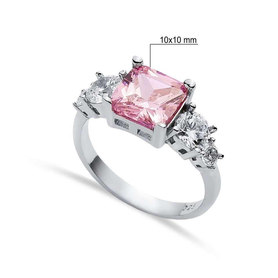 Square Cut Pink Quartz Round CZ Stone Design Cluster Ring Wholesale Turkish Handmade 925 Sterling Silver Jewelry