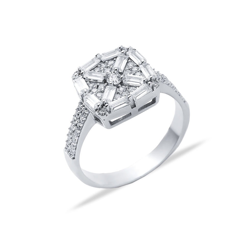 Square Design Baguette CZ Silver Cluster Engagement Ring Wholesale 925 Sterling Silver Online Fine Jewelry