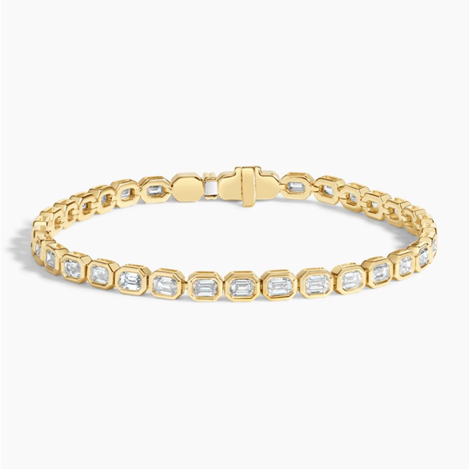 Square Design Emerald Moissanite Diamond Bracelet in Yellow Gold S925 Sterling Silver Ideal for Daily Wear or Formal Occasions