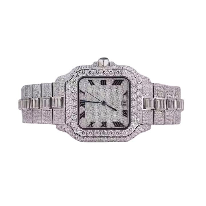 Square Dial Sport Fashion Waterproof Luminous Arabic Luxury Iced Out Moissanite Watch Lab Diamond Quartz Watch for Men Women