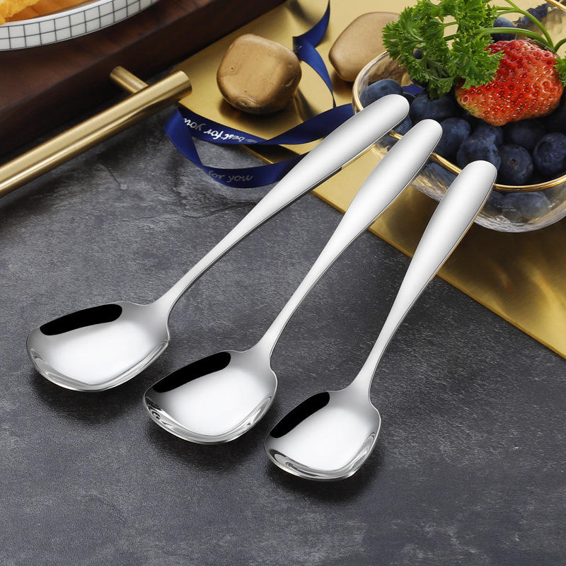 Square Flat Bottom Spoon 304 Stainless Steel Food Grade For Kids Dining Soup Spoon Thick Handle Solid Color