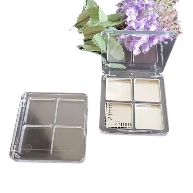 Square Four Compartment Powder Compact Transparent Plastic Box Small Capacity Multi Function Cosmetic Case
