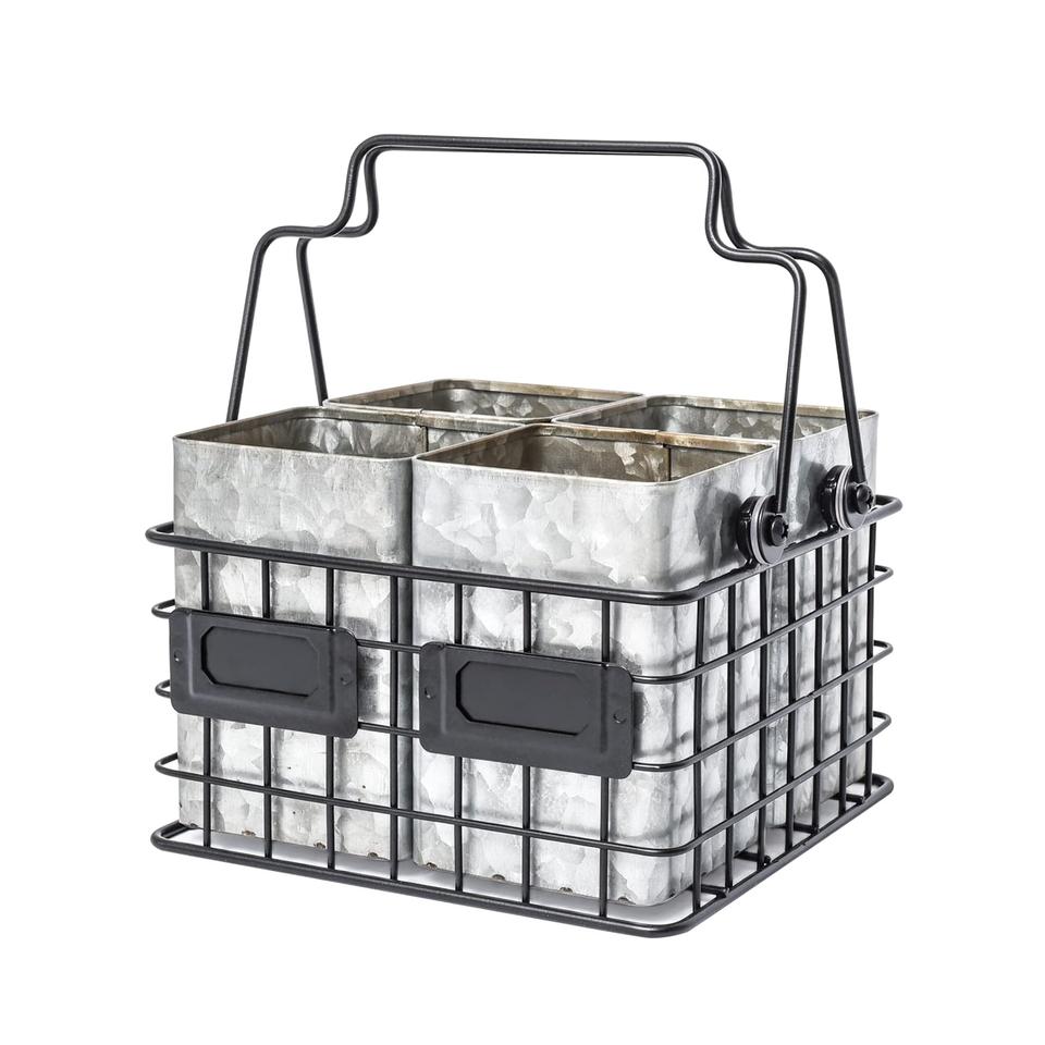 Square Galvanized Utensil Holder With Stand Excellent Quality Designer Flatware Caddy Top Selling Luxury Utensil Caddy