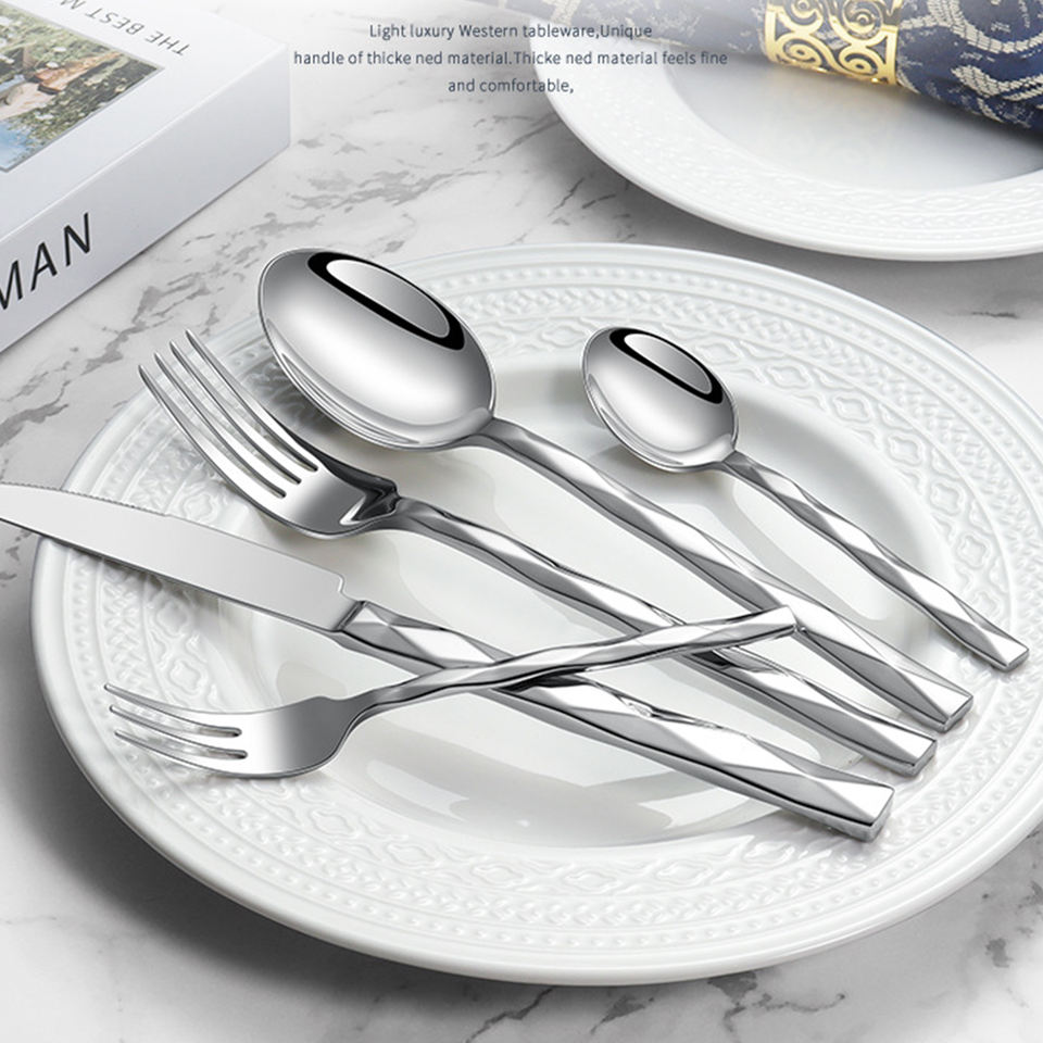 Square Handle Diamond Shaped Stainless Steel Knife Fork Spoon High-End Thickened Western Flatware Set for Hotel Restaurant