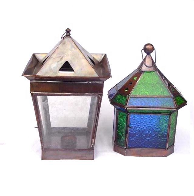 Square Hut Shape Iron Lantern With Copper Finish Moroccan Home Decor Candle Holder Lanterns