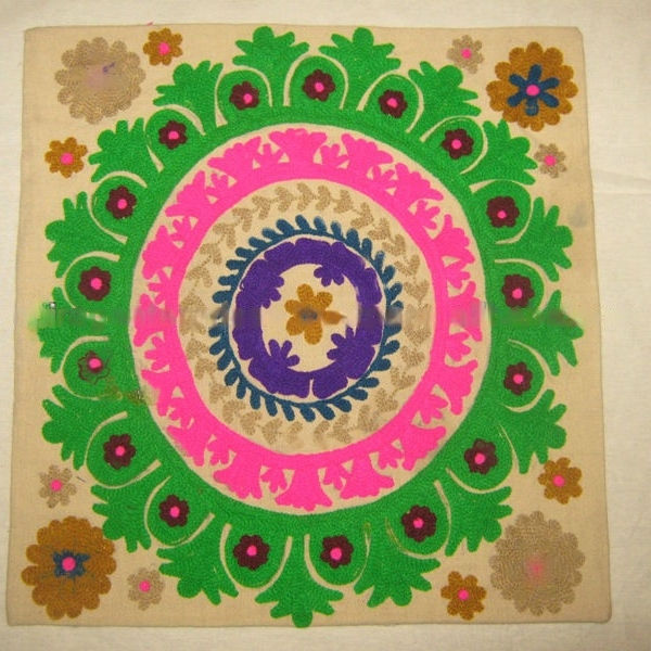 Indian Luxury Ethnic Brocade Back Cushion Cover Square Pattern Silk Linen Decorative Throw Pillow Case Sofa Home Decor