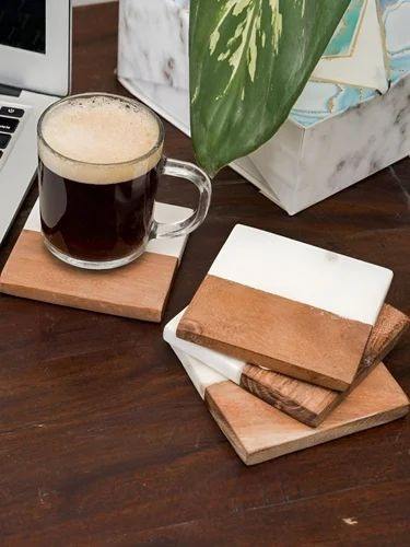 Square Marble Wood Coasters for Home Office or Christmas Housewarming for Table Use Stylish Cups and Drinks Holder Wholesale