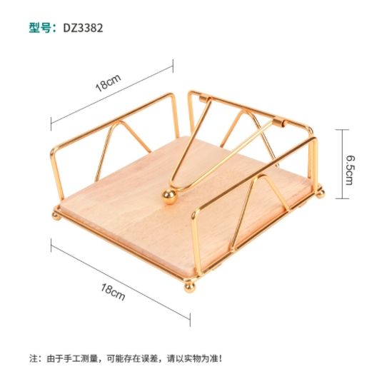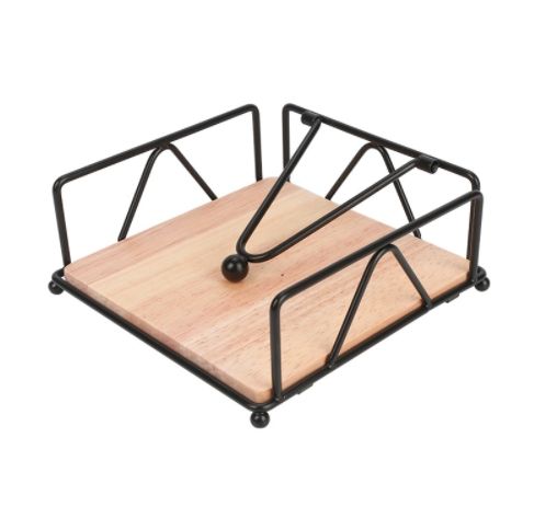 Square Napkin Holder - Durable Table Napkin Holder with Weighted Arm, Metal Napkin Holder with Wooden Base ( Black, Gold, White)