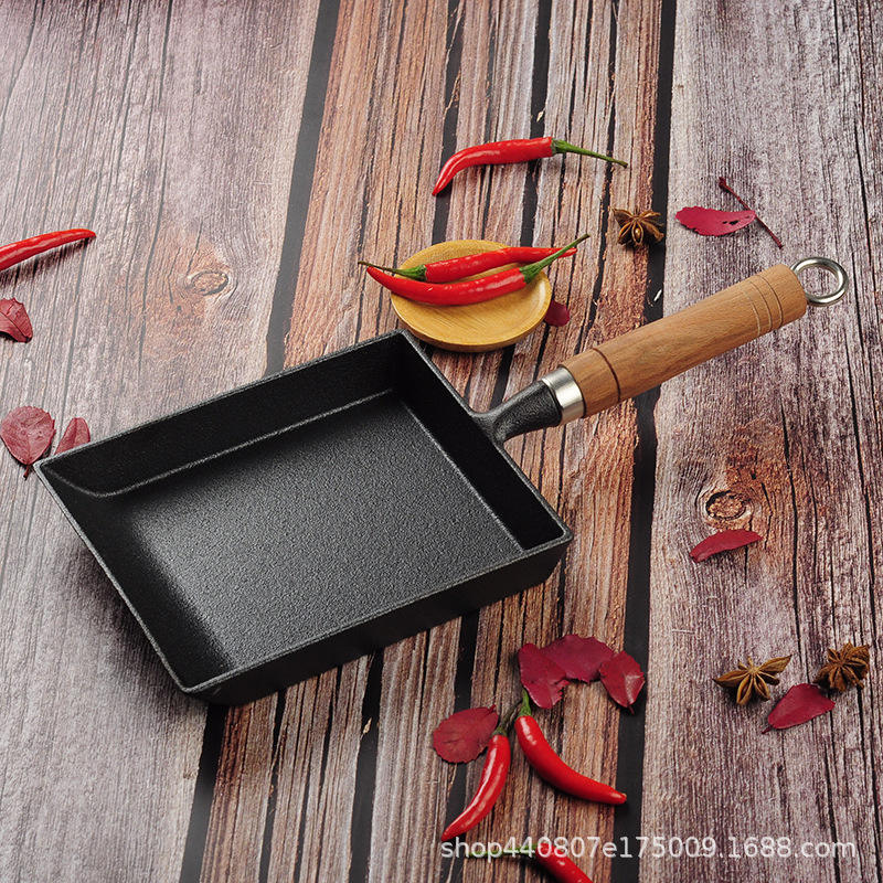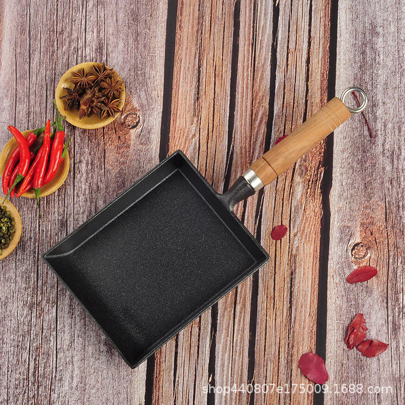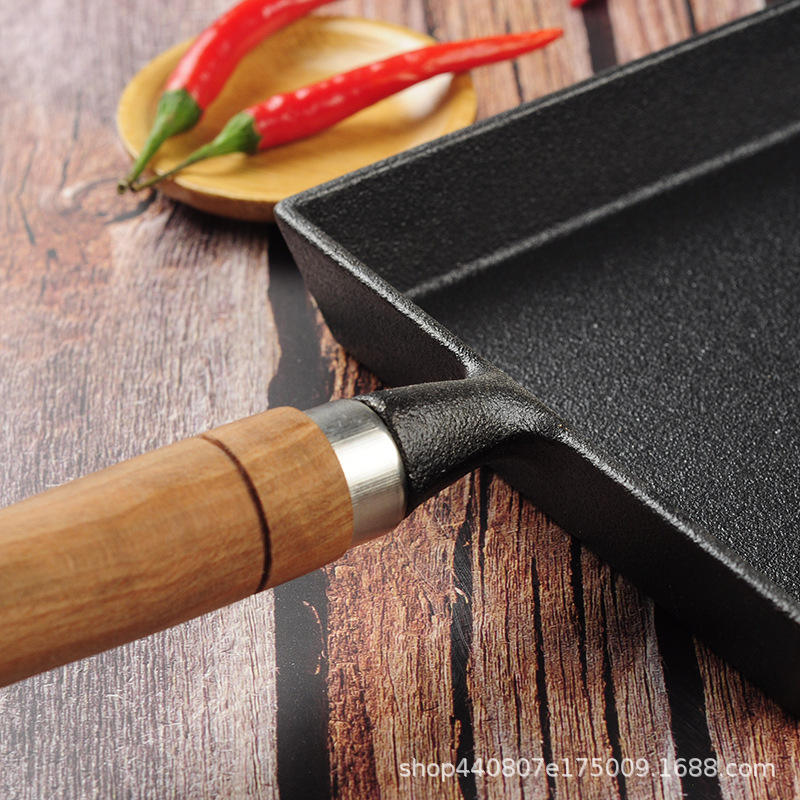 Square Non-Stick Frying Pan With Wooden Handle For Pancake And Tamagoyaki Cooking 20cm