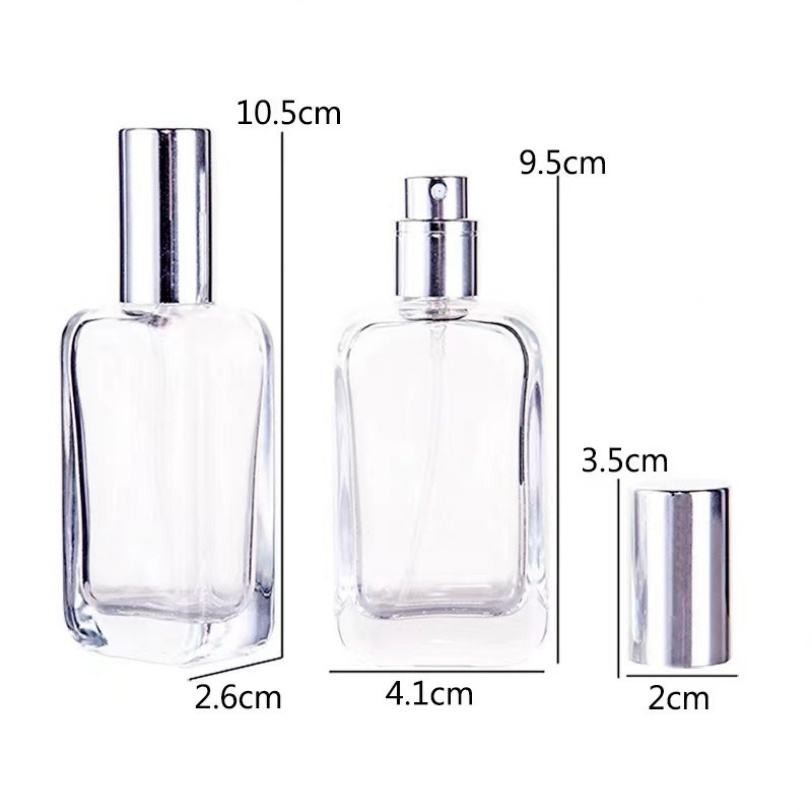 Square Perfume Bottle 35ML Portable High-grade Glass Spray Screw Cap Screen Printing Empty Bottle Replacement Travel Makeup Reed