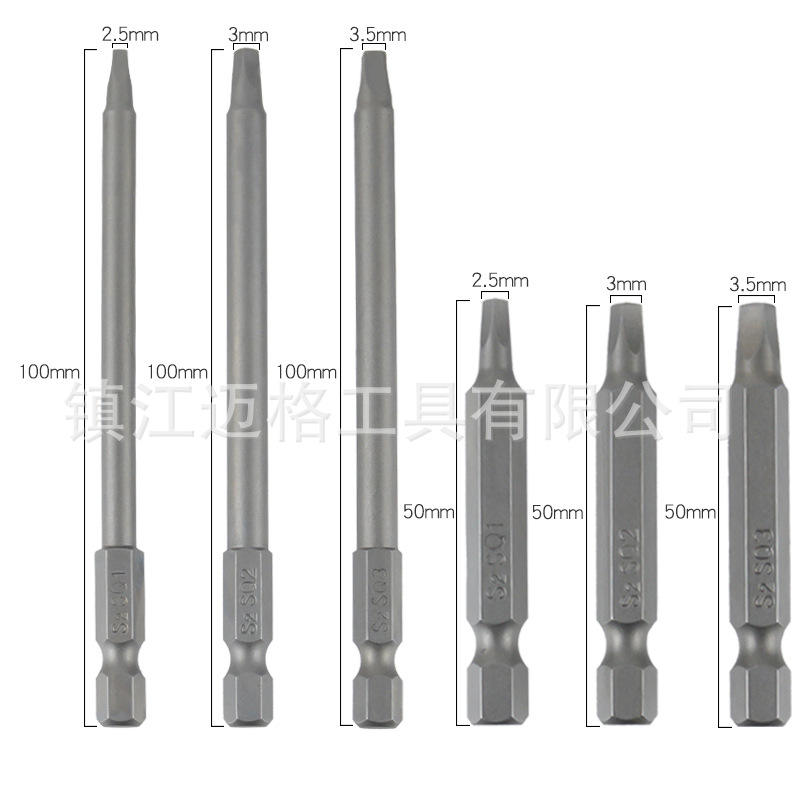 Square Screwdriver Bit Set 50 100 150mm S2 Steel 6mm 1 4 Inch Quick Connect For Electric Screwdrivers