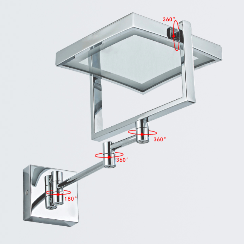 Square Shape Extendable Wall Mounted Magnifying Mirror Folding Hotel Bathroom Makeup Mirror