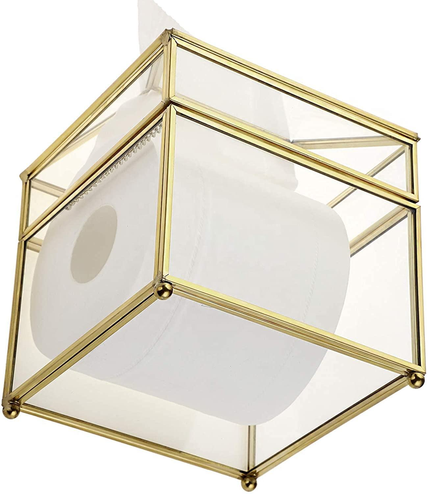 Square Shape Glass Tissue Box With Brass Gold Frame for Living Room Tabletop Decorative Handmade Napkin Holder