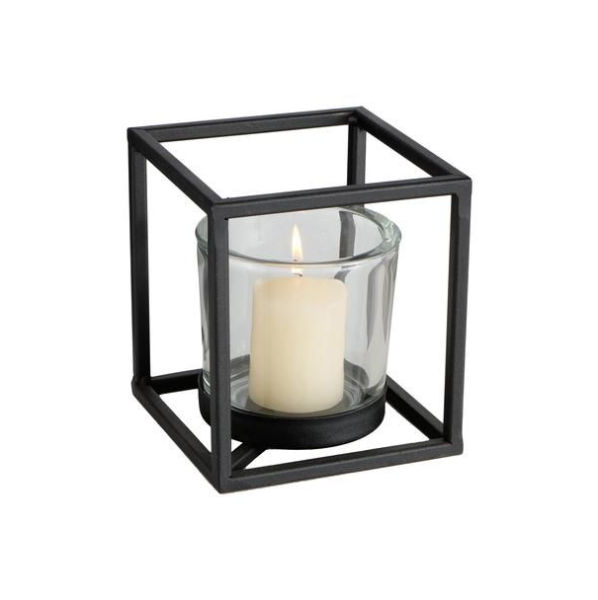 Square Shape Handmade Iron Metal & Glass Votive Candle Holder Black Finished for Christmas Home & Wedding Decor Votive