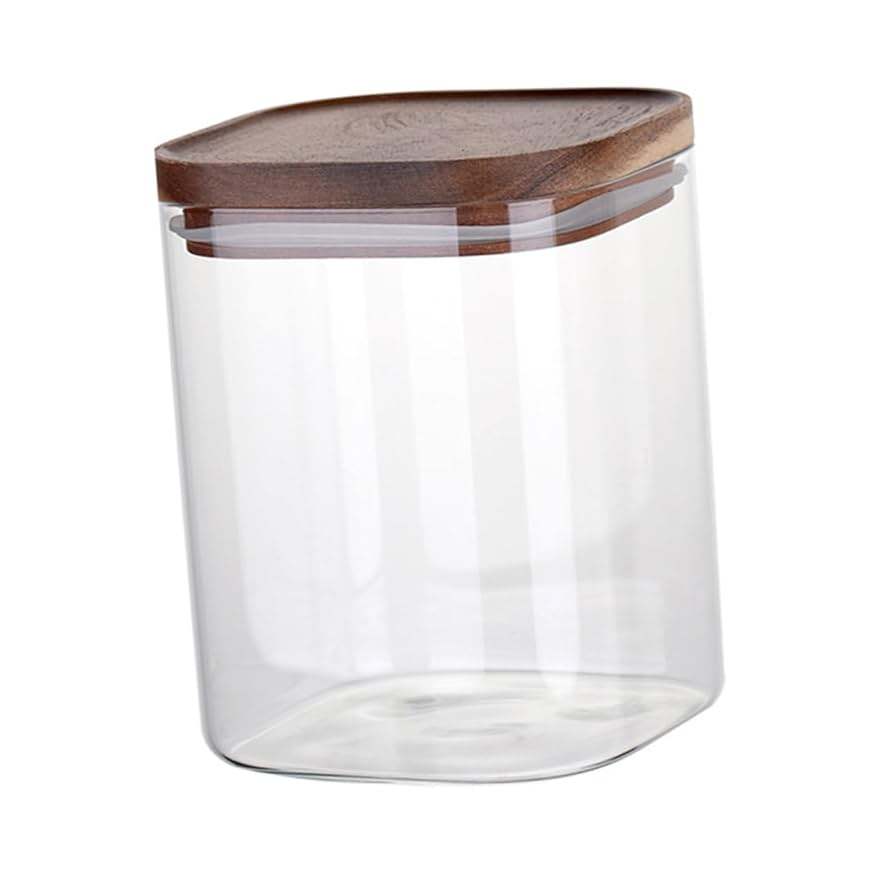 Square Shape High On Demand Glass Jar with Wooden Lid Spice Herb And Tools Condiment Nuts Dry Fruits Serving Jar