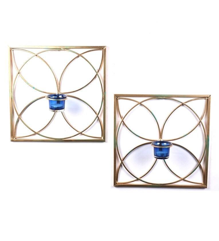 Square Shape Metal Brass Candle Holders Lanterns and Candle Stand Set for Wedding Dinner Table Decor