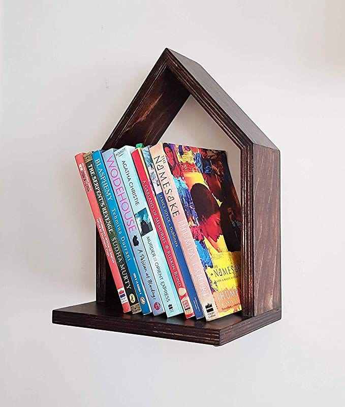 Square Shaped Wooden Wall Shelves for Wall Mounted Shelves Brown Color Wooden Photo Frame Books and Vases Storage Wooden Shelves