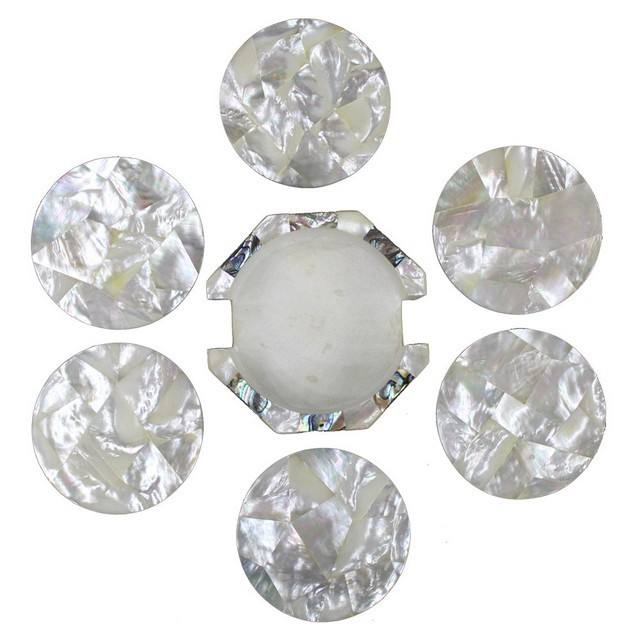 Premium Square White Mother of Pearl Inlay Table Coaster Set for Hotels and Restaurants Elegant Mat & Pads for Gifting