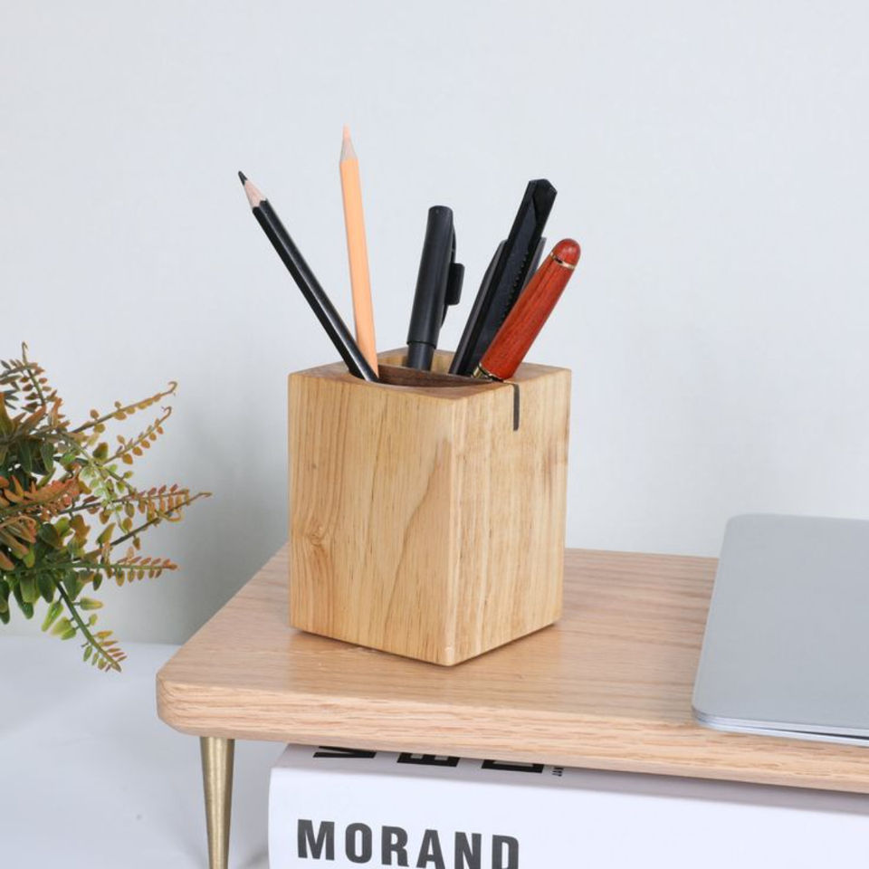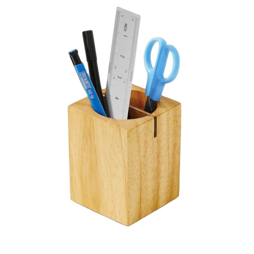 Square Wooden Pen Holder Elegant Eco Friendly Desk Organizer Perfect for Home Office Pencil Storage and Table Setup From India