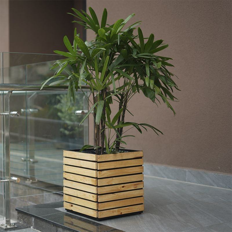 Square Wooden Planter Box with Powder-Coated Steel Frame Modern Design for Indoor/Outdoor Garden Use Natural Color Removable PP