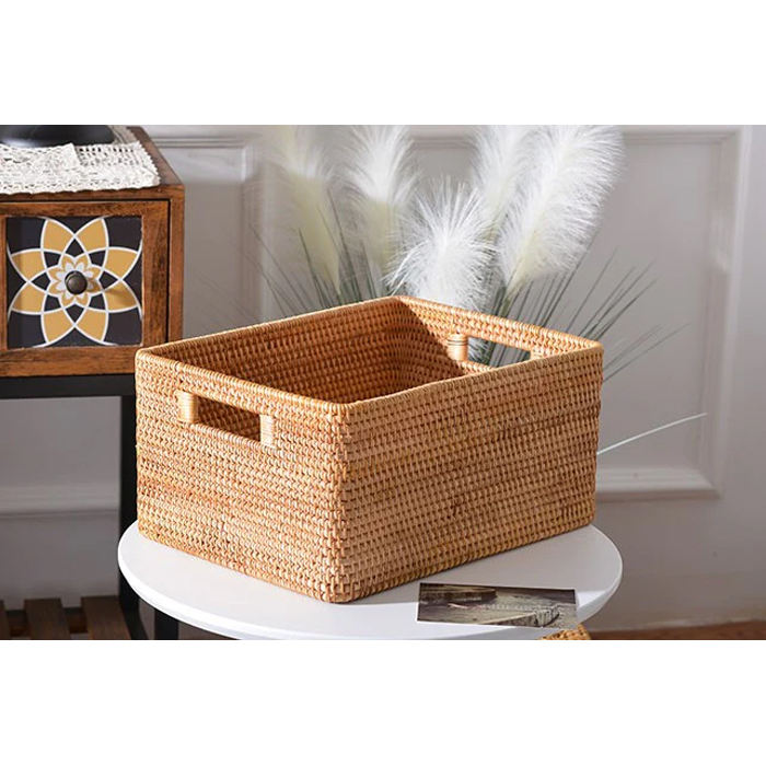 Square Woven Rattan Basket Handmade Natural Wicker Storage Basket for Home & Kitchen