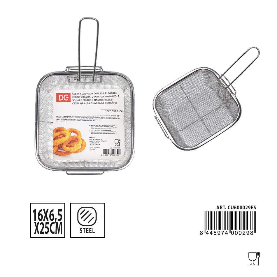 Square basket with folding handle 16x6.5x25 cm - Kitchen utensils