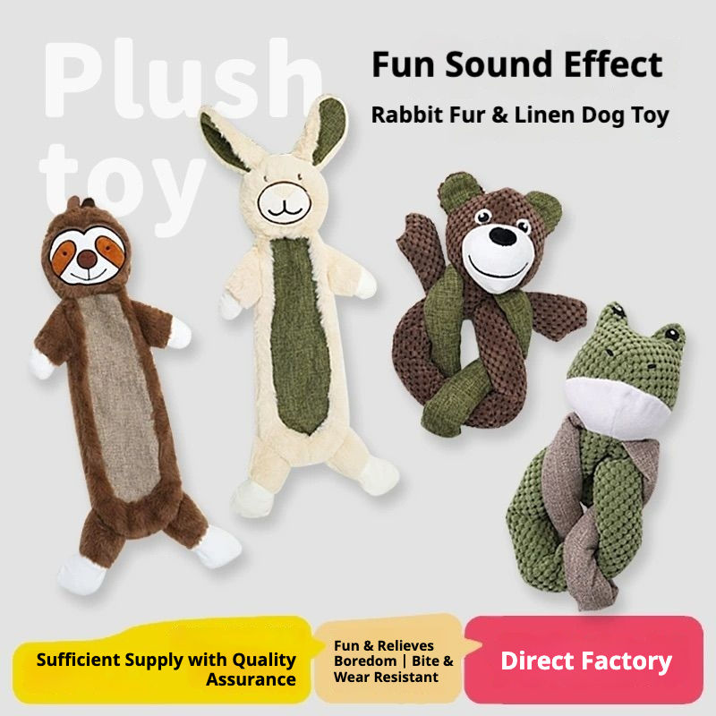 Squeaky Interactive Plush Dog Chew Toy with Rabbit Fur and Linen-Non-Toxic Bite-Resistant for All Sizes