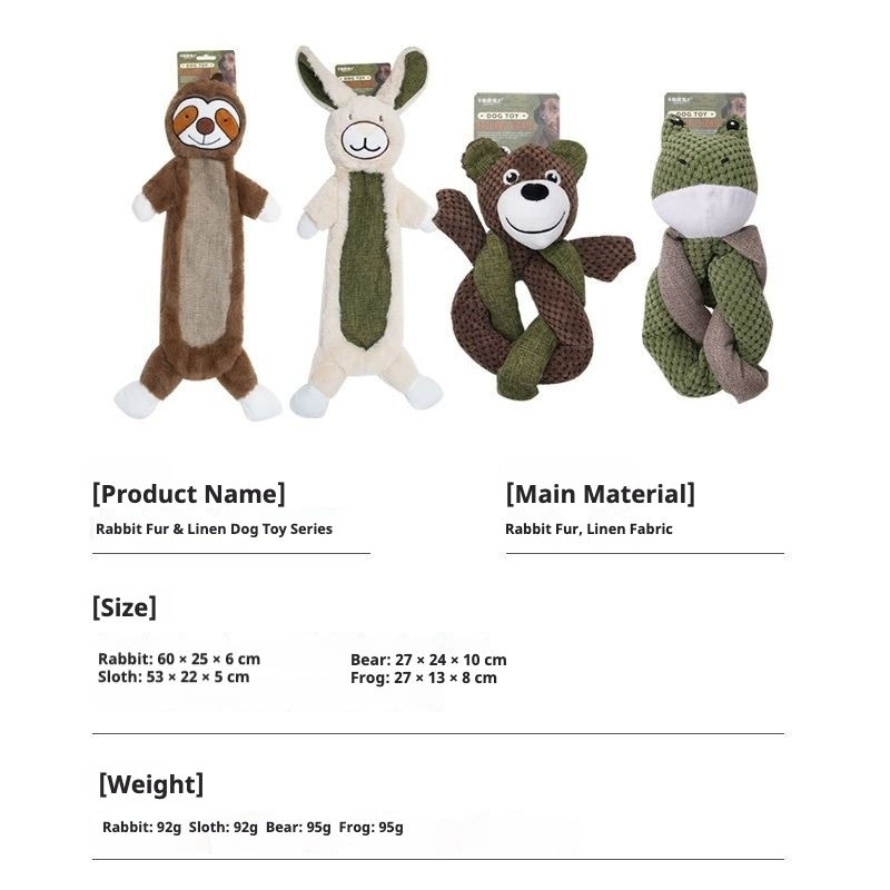 Squeaky Plush Dog Toy Rabbit Fur & Linen Chew Toy for Dogs