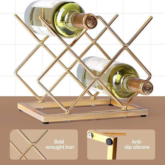 Squire 5-Bottle Free-Standing Metal Wine Rack with Wood-Style Panel Countertop Storage Holder Home & Kitchen Decor