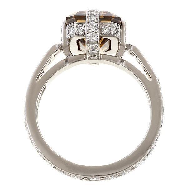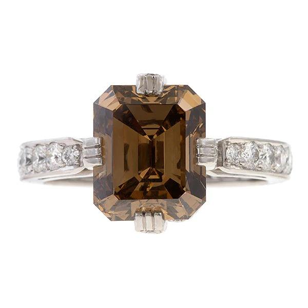 Squire Handmade Women's Solid Gold Wedding Band Minimalist Classic Embroidered Lab-Grown Brown Diamond High Steel Eternity