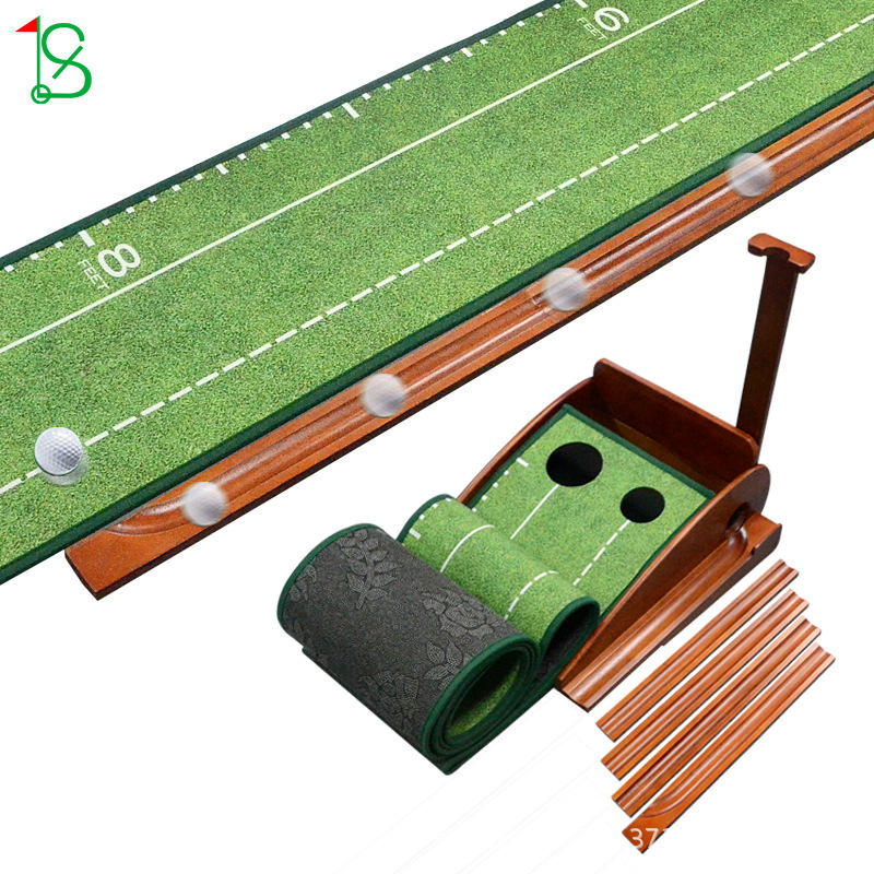 Ss Golf Putting Practice Machine Solid Wood Indoor Training Equipment With Crystal Velvet Mat Size 13.16 In