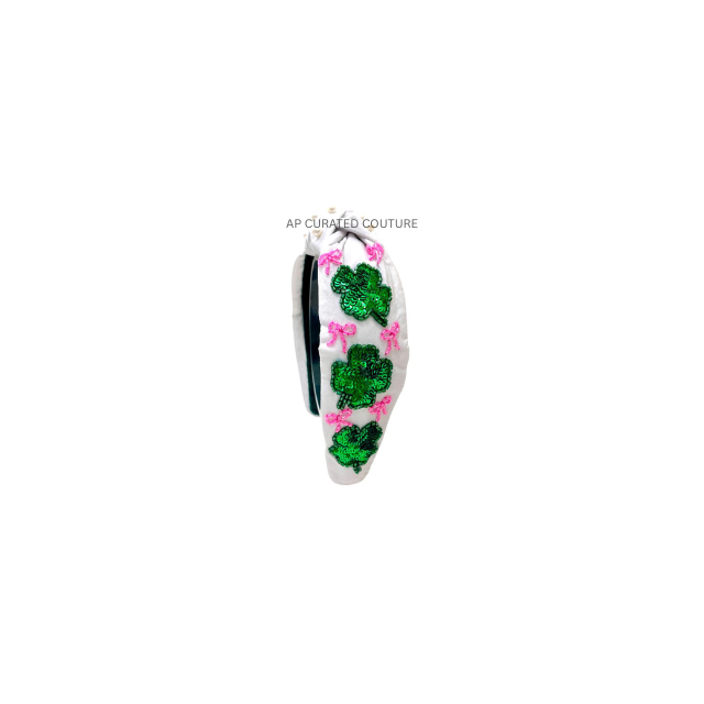 St. Patrick's Day Eco-Friendly Beaded Headbands with Shamrock Bow Design Handcrafted Pearls Durable & Classy Look