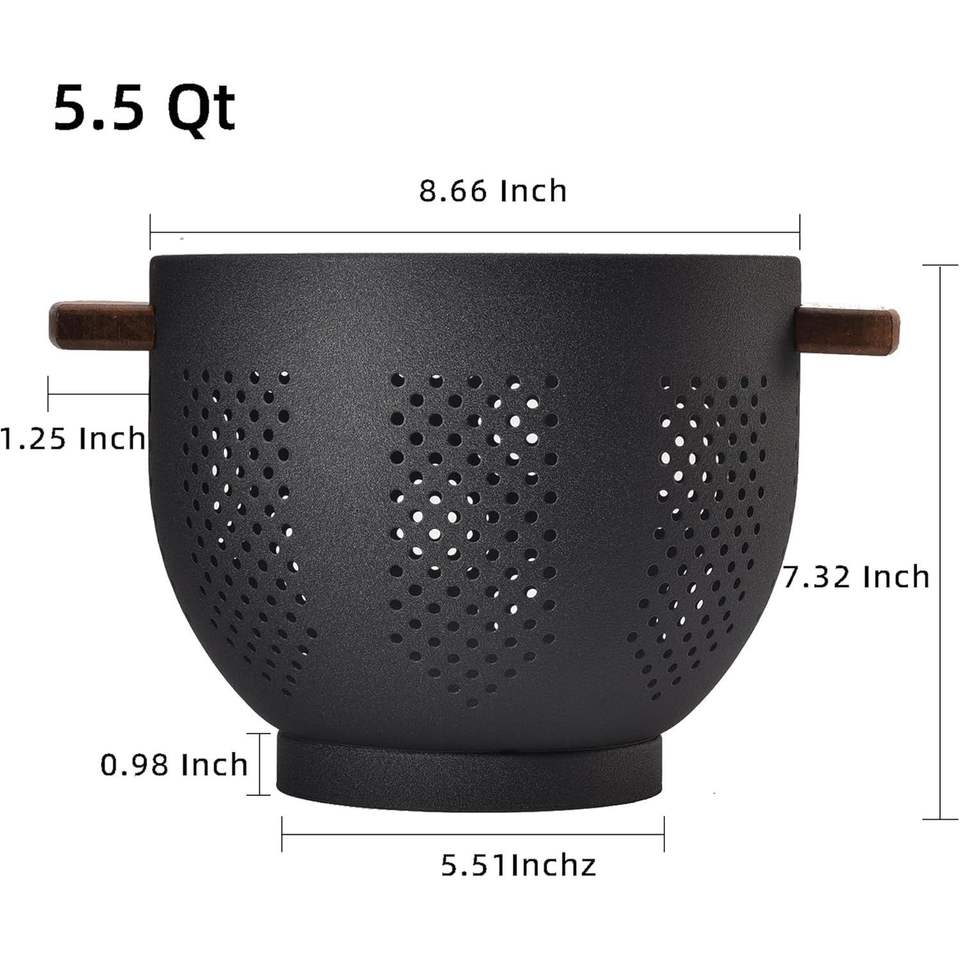 Stable Base Powder Coated Steel Kitchen Strainer Basket Metal Colander with Wood Handle for Draining Pasta & Vegetables