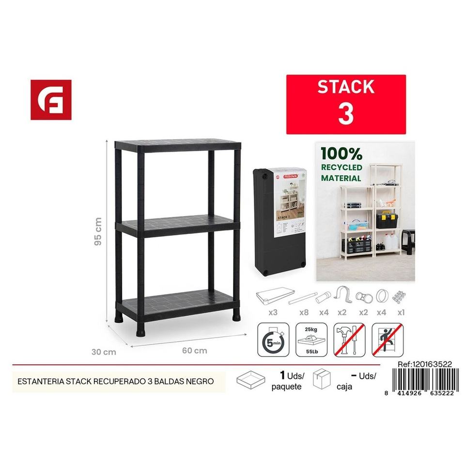Stack Reclaimed 3-Shelf Black Bookcase - Home Decor & Shelving