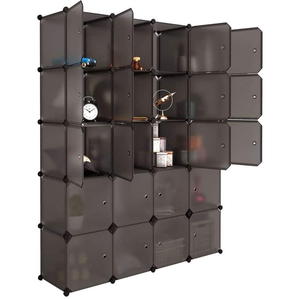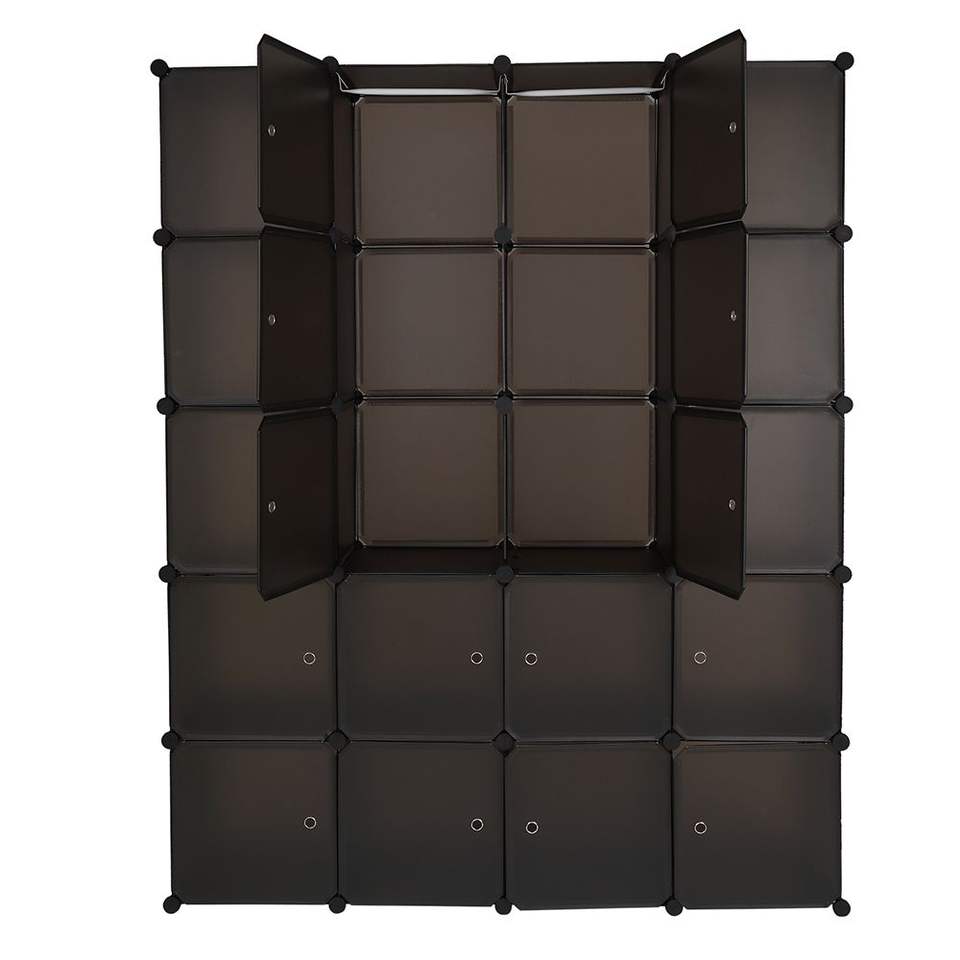 Stackable 20-Cube Organizer Brown Multifunctional Modular Closet Cabinet Hanging Rod Portable Wardrobes Storage Shelves Design