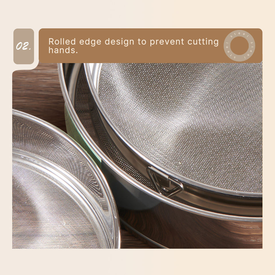 Stackable 201Stainless Steel Flour Sieve 50 Mesh Kitchen Food Bean Powder Filter Screen Sieve Sifter Baking Filtration Screening