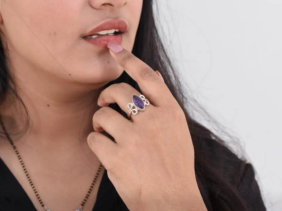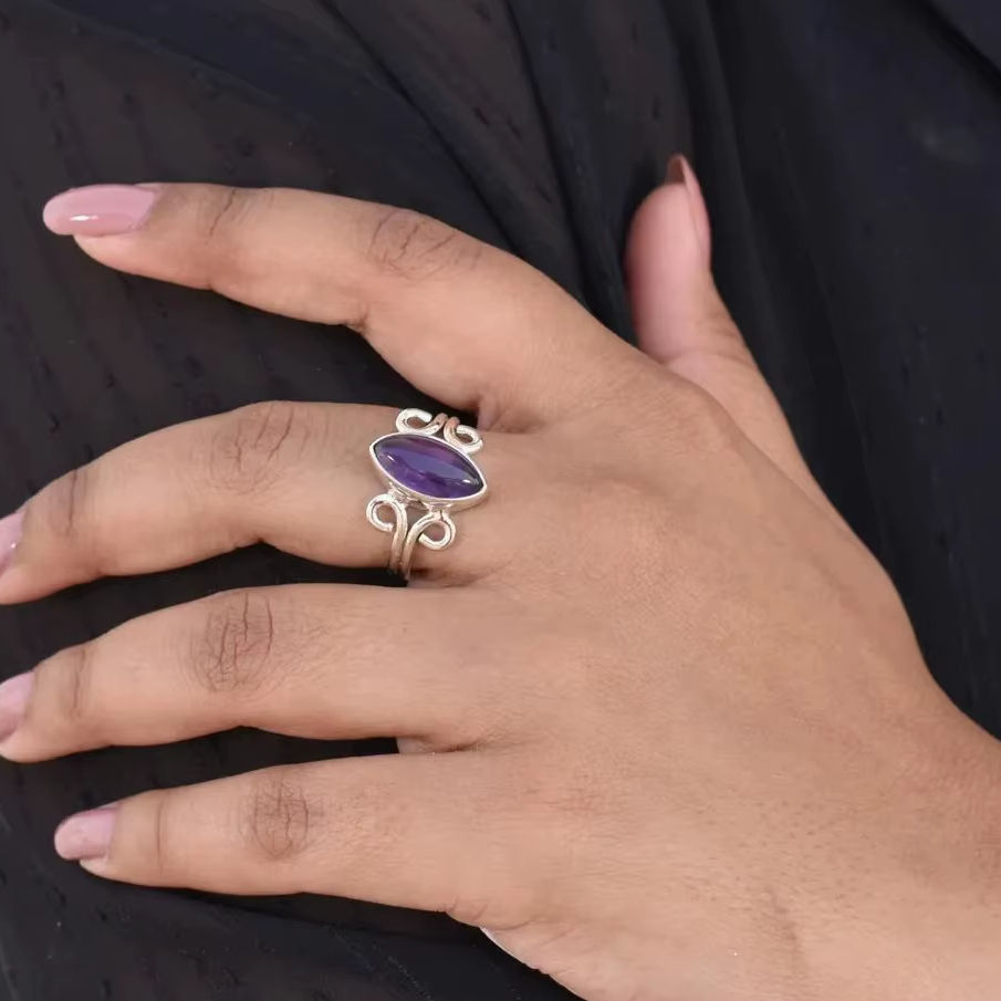 Stackable 925 Solid Sterling Silver Marquise Cut Amethyst Ring Factory Wholesale Bulk Handmade Jewelry for Women
