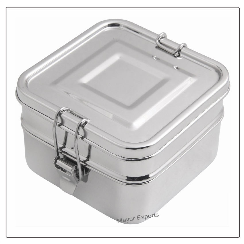 Stackable Double Layer Stainless Steel Square Bento Lunch Box Snack Plate Food Storage Carry Perfect Tiffin Container BPA Free