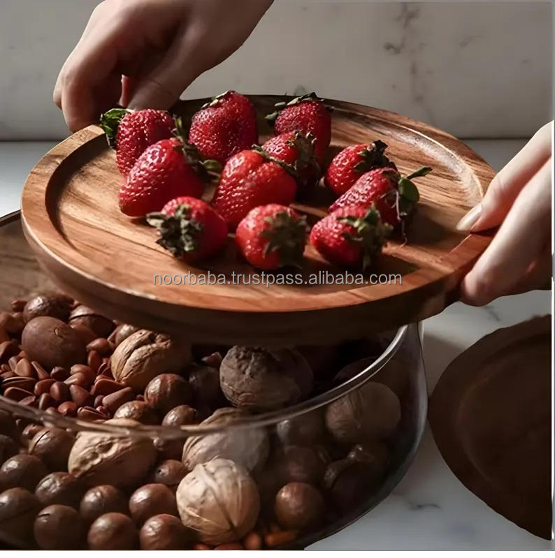 Stackable Glass Serving Bowls with Wooden Lids MultiTier Fruit, Nut, and Dessert Display Elegant Kitchen & Dining Organizer