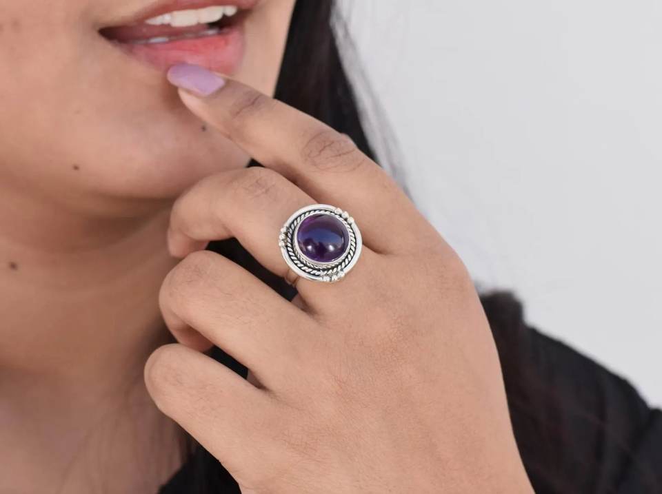 Stackable Handmade Round Amethyst Ring 925 Sterling Silver Factory Wholesale Bulk Natural Gemstone Jewelry