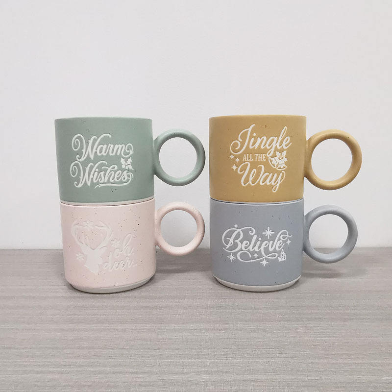 Stackable Macaron Ceramic Coffee Cups Solid Color With Handle Set For Presents