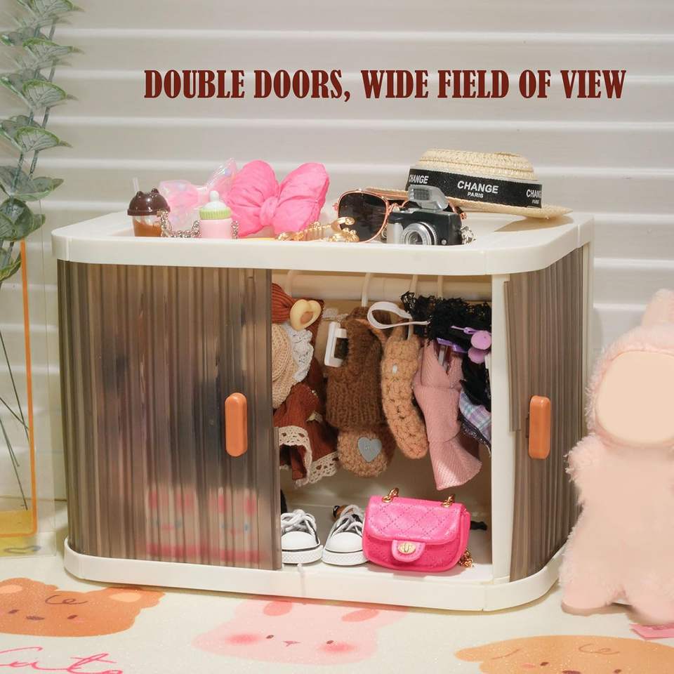 Stackable Organizer Cabinet with 10 Hangers & Rod Foldable Portable Wardrobe Storage Box Compatible with Labubu Clothes