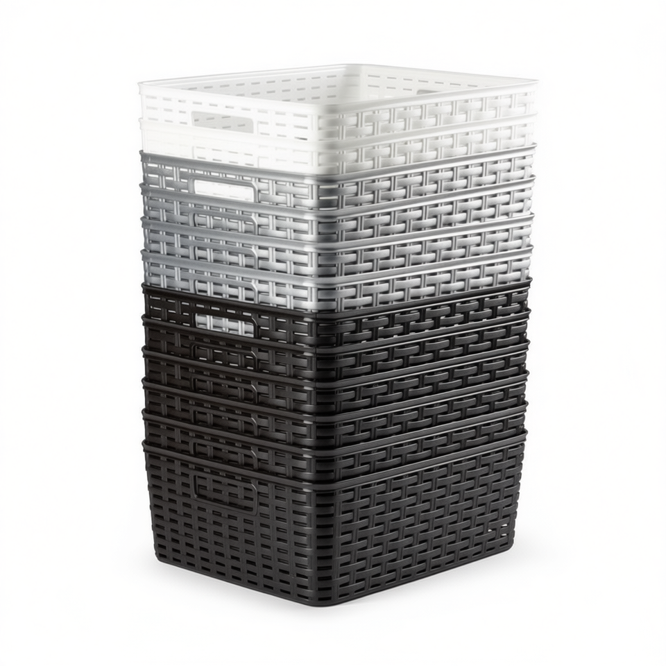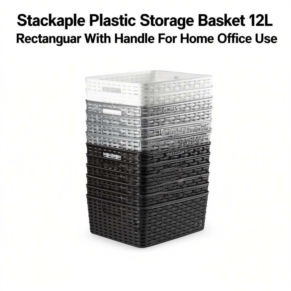 Stackable Plastic Storage Basket 12L Rectangle With Handle For Home Office Use