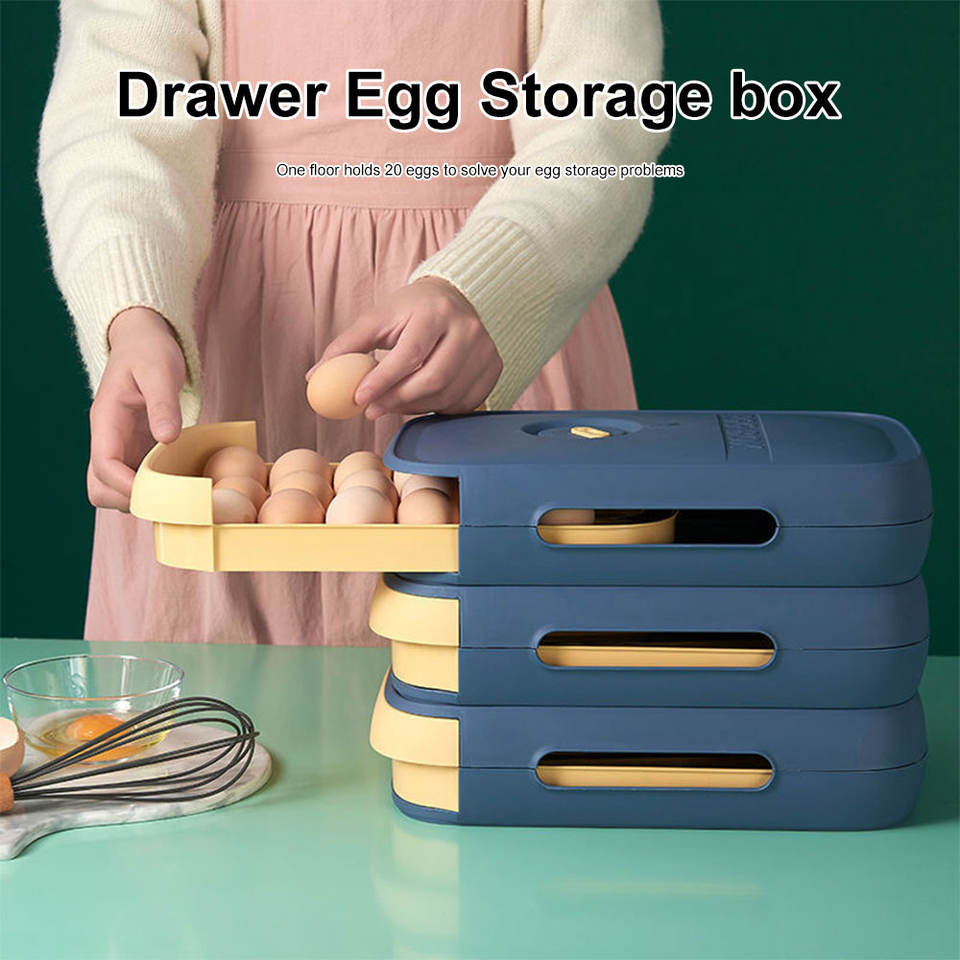 Stackable Plastic Storage Holder Fridge Organizer Bin Drawer Auto Rolling Container Box Tray for Refrigerator