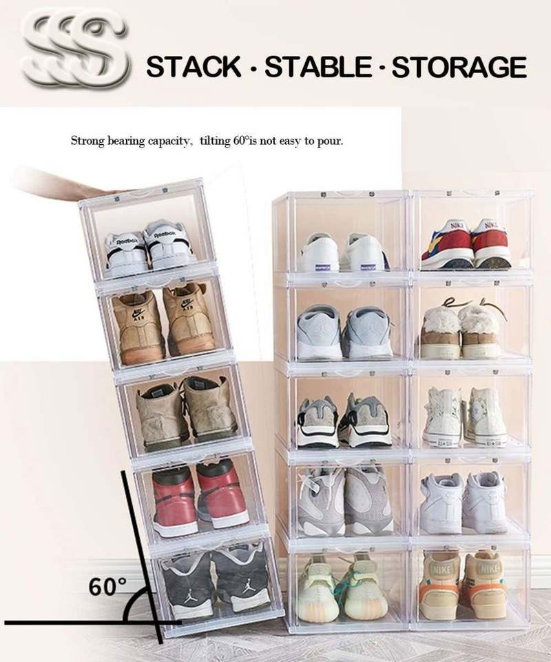 Stackable Shoe Organizer Clear Plastic 3 Pack Shoe Boxes for Display Shoes Sneakers Storage Clear