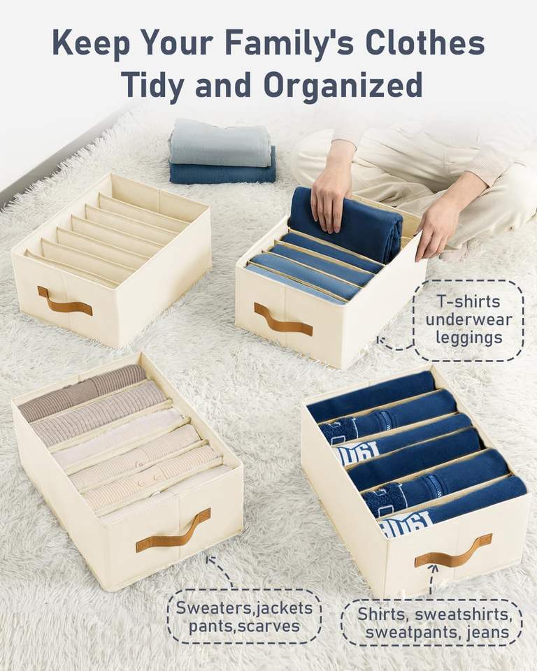 Stackable Waterproof Fabric Wardrobe Drawer Storage Box Sock Underwear Organizer Pants Jeans Clothes Dividers Foldable Bathroom