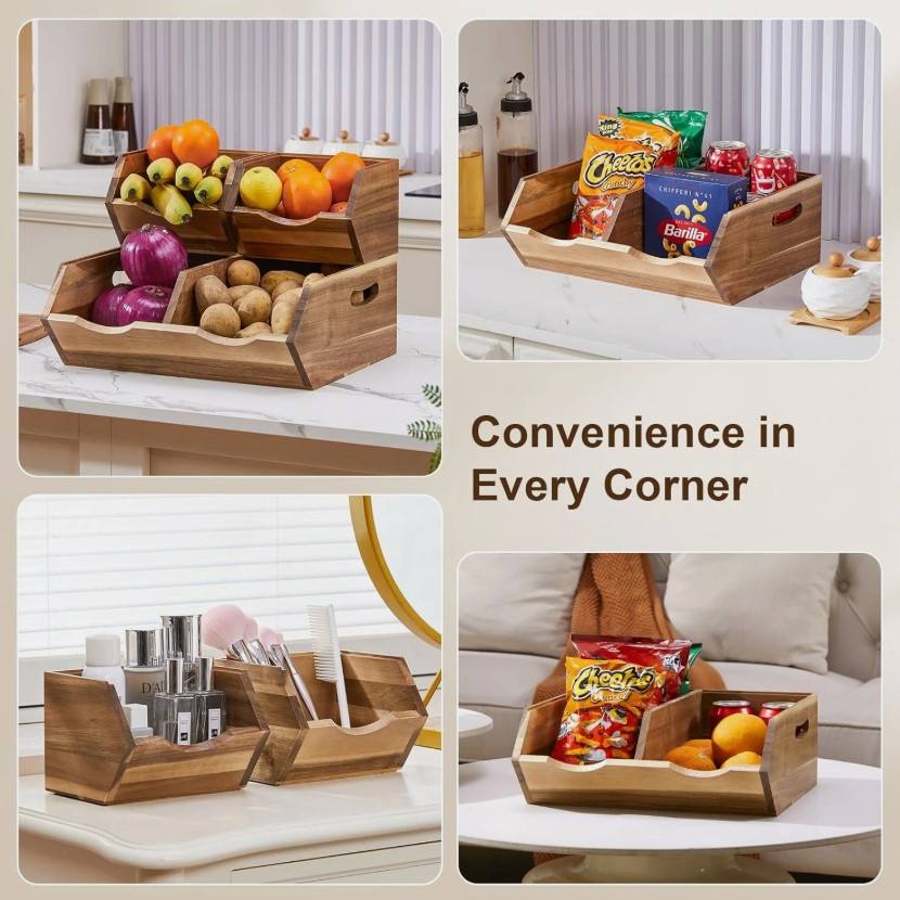 Stackable Wooden Storage Bins with 3 Compartments, Countertop Produce Organizer for Kitchen, Pantry Storage Rack from Vietnam